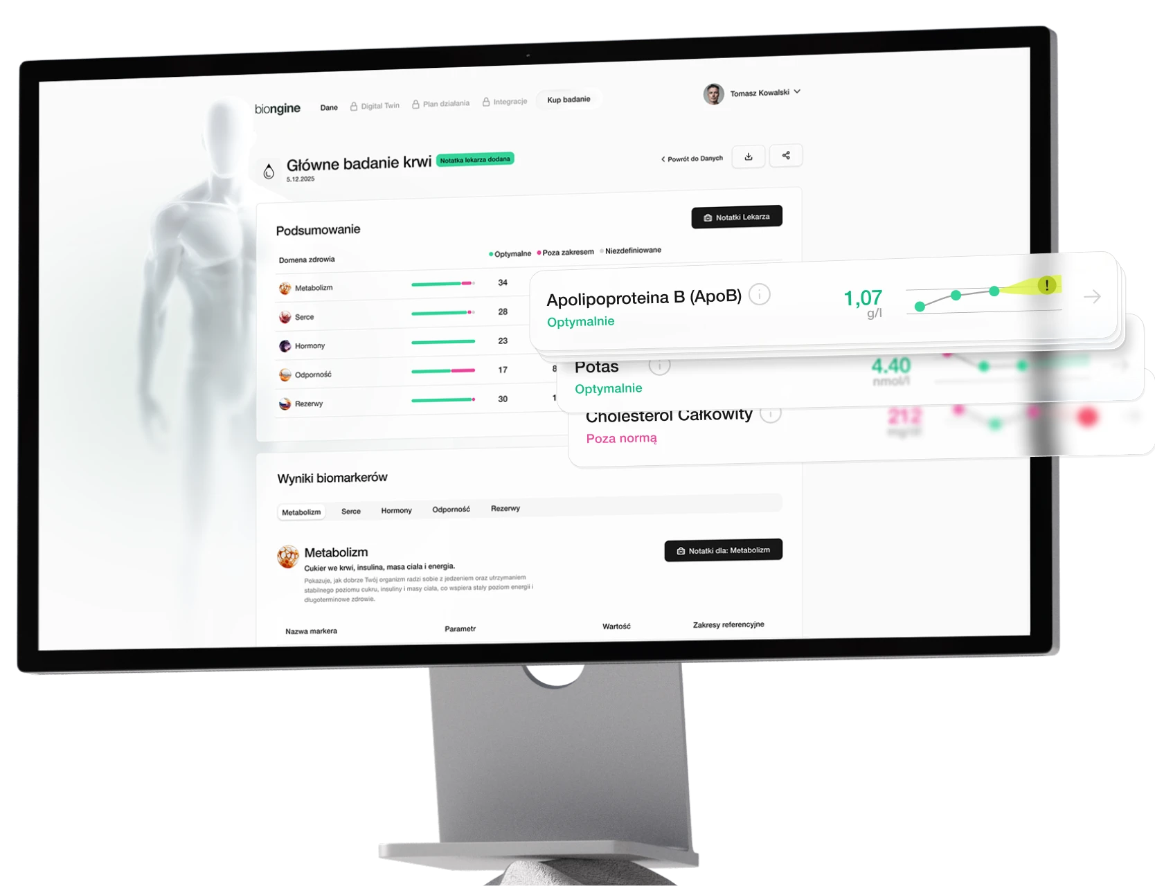 Track changes. Deepen your analysis. Build a digital model of your health. This package includes everything from Biongine Insight, plus: